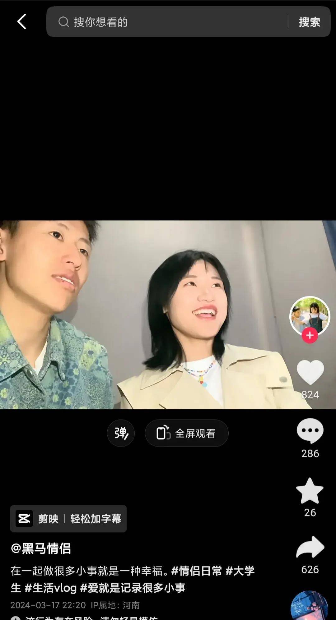 但两人也一直没有分手,反而和和美美的继续拍短视频,一下子成为了博主。而走的路线就是抠搜情侣路线,尽管被骂被争议的地方有很多,可是实实在在的流量却也获得了。