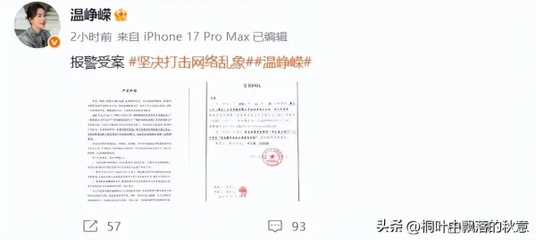 最近刷到演员温峥嵘的动态,心里挺感慨的。12月1日她突然发文,说针对被盗播、AI换脸卖假货的事儿报警立案了,还晒出受案回执,语气特别严肃。