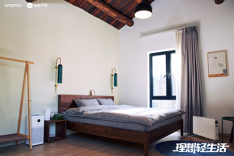 除了家具,为民宿选用家电也是一门学问。除了风格搭配,功能上也不能打折扣。因为木制品本身对于气候变化非常敏感,空气干湿状况会影响木制品的寿命。尤其是在使用暖器的冬天,太干太湿都容易造成木质家具损坏,因此李琦选择了更加智能的加湿器来使用,把周边的湿度控制在合理范围内保证人使用健康的同时,让家具也能不受影响。
