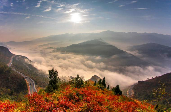 这是巫山红叶红得最早的景区之一,该线路全程38公里,沿途十余公里,放眼望去,满山遍野,如火似霞的红色海洋,十分震撼,让游客流连忘返。还可探访距今9万年前的九个洞官渡人遗址。