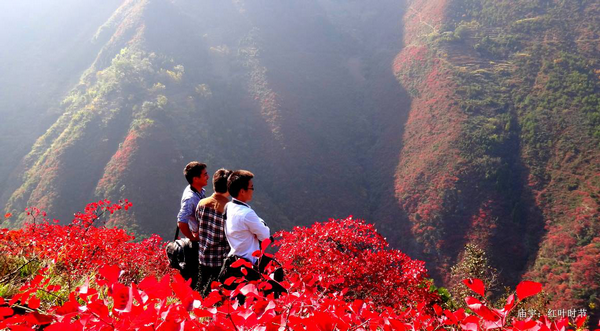 向全国人民敞开怀抱,邀请共赏红叶盛景,乘舟过三峡,两岸红叶更赛花。