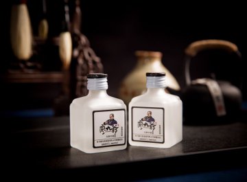 “好看”。外观别出心裁推出40度50ml(一两)、40度100ml(二两)装两款小瓶,釆用国际风行高级香水专用的磨砂瓶包装,50ml版的还附加一个透明酒斗,美观别致、超有颜值。外包装釆用大小易拆套装包装并配上礼盒、礼袋,简约、时尚,属典型的青春版包装新概念。