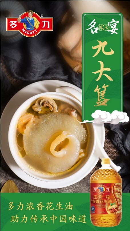 满汉全席、红楼宴、孔府宴、大千宴和九大簋都是中华饮食文化的精粹和结晶。作为中华美食行业的一员,秉承“中国味道 世界品质”的理念,多力会努力为中华匠心文化迈向世界做出贡献,怀抱助力中华美食文化代代相传的初心,油衷守护国人餐桌健康、守护品质美味每一餐!