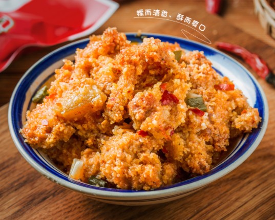 不止是制作简单、快捷。【广乐食品】的原料更是不放松,严选晶莹大米,高温炒制到颜色发黄,再加入调味炒制入味,最后使用专门机器研磨成细腻米粉。研磨时整个空间米香四溢,研磨出来的成品微微发黄,粉质细腻,开袋即可闻到大米香气与香料香气融合的干爽香味。至此,做粉蒸肉最麻烦的一步已经帮你做好了。