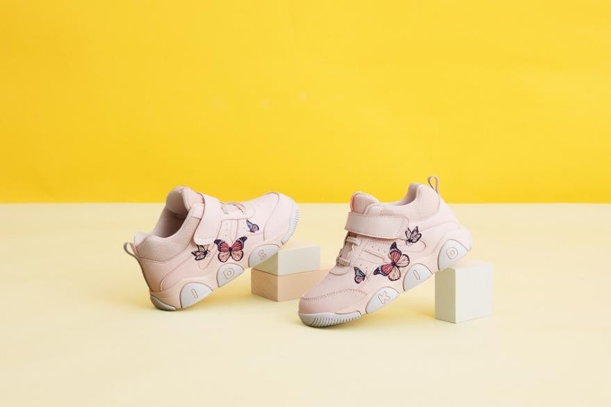 这个系列女款同样美貌,主调粉色,鞋身有蝴蝶图案点缀,穿起来仿佛蝴蝶萦绕,灵动十足!