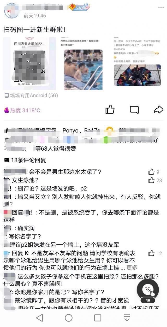 这两日,四川农业大学某女生,在网络上发文,十几个男生进入女生泳池去玩,真害臊引起热议。