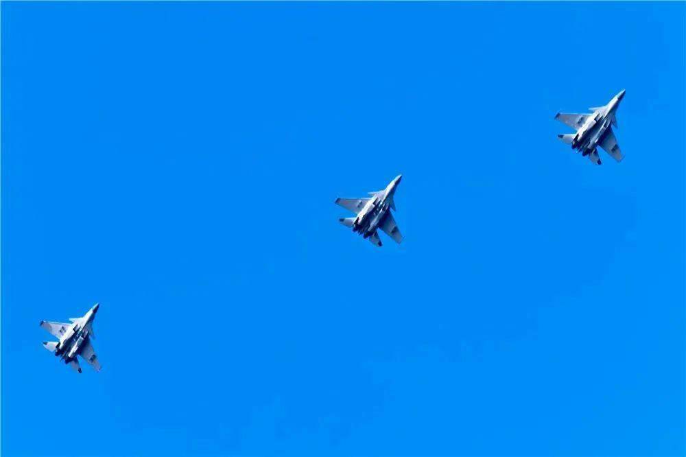 画面中一名飞行员驾驶舰载机从航母上起飞