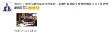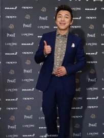 看看黄渤,表情严肃,穿着正式的黑西服,白衬衣还打着中规中矩的黑色领结。显得整个人端庄大气。