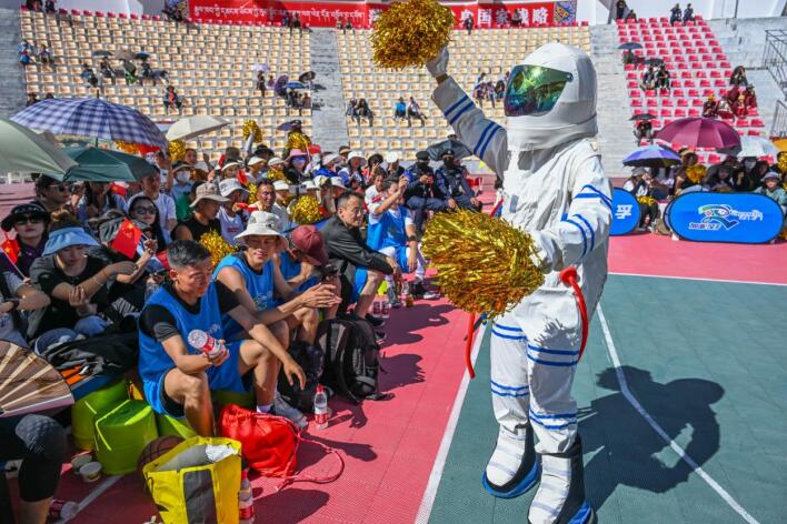 “普洒!秀加!让我们热情欢迎阳光普洒队登场……”随着现场欢呼声响起,首场“高原村BA”在四川甘孜州道孚县拉开帷幕。