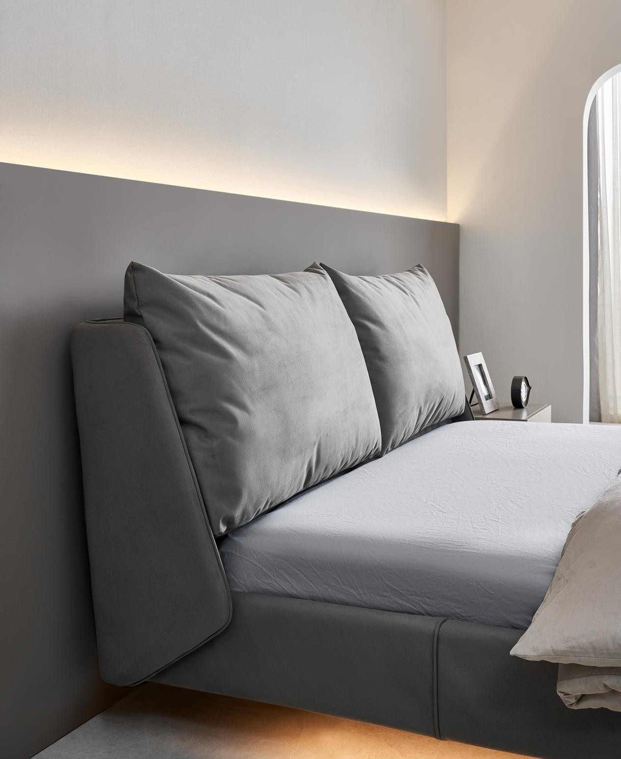 源于彗星表层灵感,【巴斯】的“空气”大靠包采用深空灰磨砂布,细腻亲肤,柔软舒适;内填轻盈软弹的微孔式高弹棉,营造出仿真空微重力靠感,左右分体设计互不干扰,轻松缓释整日压力。靠包以机械床耳环绕,未来感十足,似被爱人环抱,安全感满满。