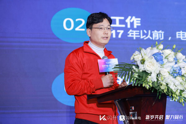 大会始伊,闪开创始人&董事长陈可先生发表致辞及重要讲话,陈总表示,闪开以能源为核心,在多品牌、多品类及多渠道的战略驱动下,形成了电动自行车充电桩、电动汽车充电桩、iFaster电摩超充、智慧照明四大业务矩阵。新的一年,闪开要带领1500+合作运营商,稳扎稳打,夯基础、补短板,也要不断为广大运营商做好产业、金融、流量、技术方面的赋能,全面提升行业占位。