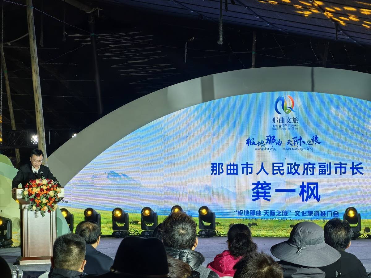 推介会上,那曲市人民政府副市长龚一枫出席推介会并发表致辞,向与会嘉宾表达了热烈的欢迎,并在活动现场发出诚挚邀请,欢迎更多的游客朋友能够来到那曲观光体验、休闲度假,实地感受“极地那曲”的独特魅力。
