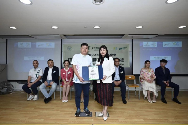 港隽动力青年协会副主席张志文颁发感谢状,给予中联办青年工作部副部长万宁女士BBS, JP