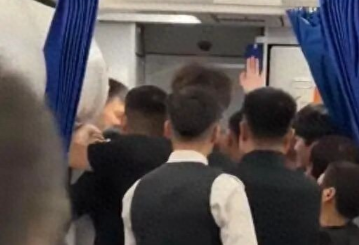 视频显示,机舱内乘客多已登机,但前舱门处有一女子与机组人员发生争执。网友在视频配文及评论区称:"一位孕妇超龄登机,整个机组劝说协商她也拒不离机,全机旅客已经等她一小时了。""僵持了一个半小时,最后警察来了,才弄下飞机。"