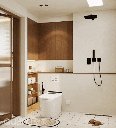 利用墙面凹位,在马桶上方以及侧边的空白墙面定制壁柜。