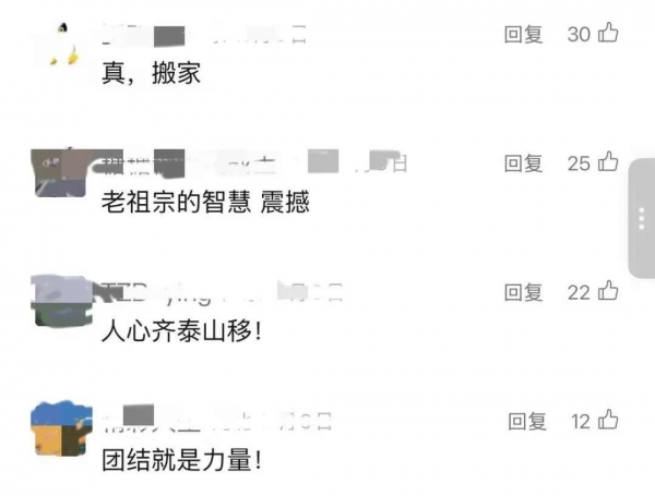 网友纷纷转这段视频,六吨重的木屋都能扛,还有啥难事过不去,有人问这技术能不能用到别处,更多人是被村里人那份信得过、靠得住的情分触动了,比起钢筋水泥,人心才是最牢靠的地基。