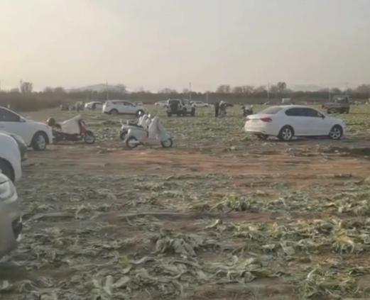 在网传的一则视频中,博主的镜头面向一片齐整的白菜地,并配文称 " 几百亩大白菜现在都不要了 "" 内蒙古欢迎您来捡白菜 "。这条未经核实的视频被发布后,又经个别媒体和部分网友传播,让事发菜地的种植户李先生最终在 11 月 6 日上午见到了失控的一幕。