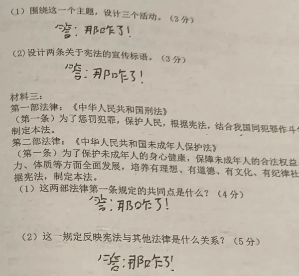 遇到不允许空着的大题,只写"解"字太窝囊,写"略"字又太敷衍,"那咋了"既凑了字数,又表明了态度,将它奉为所有试题的答案,再好不过。