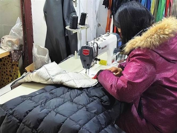 上周末我特意跑了济南槐荫区几家翻新店,一家开了十多年的老店门口堆满了旧羽绒服,店主罗师傅手里拿着针线忙得抬不起头。"从十月底就没闲过,一天接七八单,经常干到后半夜。"他一边给我看面料样本一边说,翻新流程很简单:拆旧绒、烘干除尘、选新面料、缝制,一周就能取件,短款260元、长款500多,比商场新品便宜一半还多。