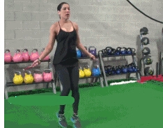 2、双腿跳的同时,左右方向交替轮换,锻炼灵活性和臀部。