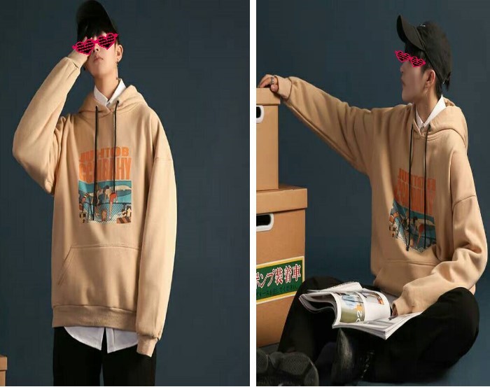 这款卫衣看起来非常活泼,穿起来很可爱。特别是阳光的男孩子穿起来最适合了,版型宽松,里面搭衬衣,时尚又保暖。连帽也非常的方便,保暖又时尚。黄色用来搭配浅色牛仔裤也很好看,黑色牛仔裤也不错。搭配运动鞋,或者是耐克、aj,都是今年最时尚的穿搭了。冬天穿面包服也比较用这件内搭,不要错过哟。