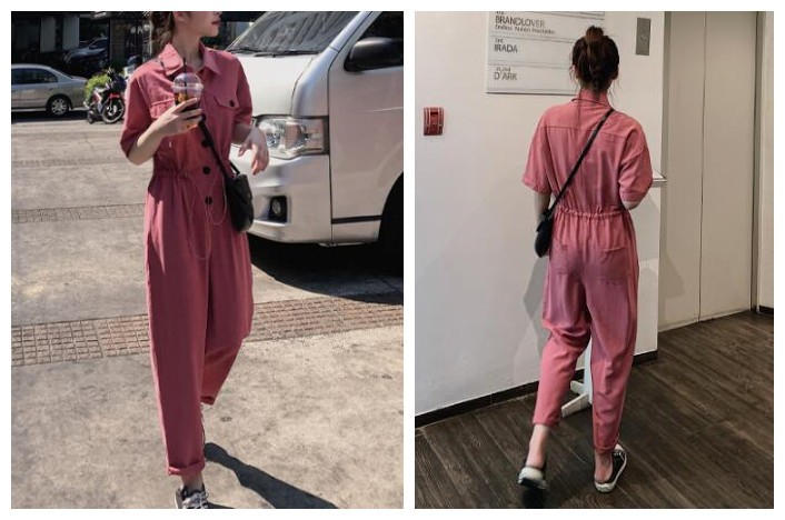 这款今年火爆的连体裤,可以说是夏季里穿搭超级有范儿的装扮了,休闲式的风格,总是惹人喜爱,衬衣+裤子拼接而成的连体裤,穿上身的瞬间让你体验别样的惊喜,简约又时尚,不仅显腿长还特别显瘦,既抢眼还很舒服,连体裤的潮流风潮再次掀起,女生衣橱中必备的时尚单品!你心动吗?