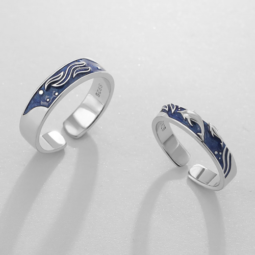 生活不像电视剧,没有那么多一帆风顺,童画这款“如鱼得水”情侣对戒,不止寓意生活一番风顺更表示小情侣的爱情顺风顺水,以鱼和水作为设计元素,水滋养鱼,鱼离不开水,爱情之中谁也离不开谁,需要相互信任、包容和理解才能长远的发展下去,大海那么大,鱼那么多,人海茫茫中你我相遇本身就如童话一样美好,这款戒指就如同与你在一起一样美好。材质也是使用925银,对表层进行了电镀工艺处理,突出水和鱼的立体造型,看起来设计感更强烈,加上蓝色与白色的搭配,清爽自然,如如沐春风般吹动了人们的心。