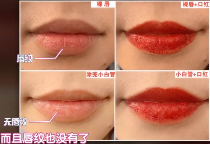 不仅能润唇,并且是专业的口红打底的小白管,小姐姐在使用前后,不仅唇纹少了很多,特别是用口红之后就很均匀,滋润,口红的颜色也凸显出来了。