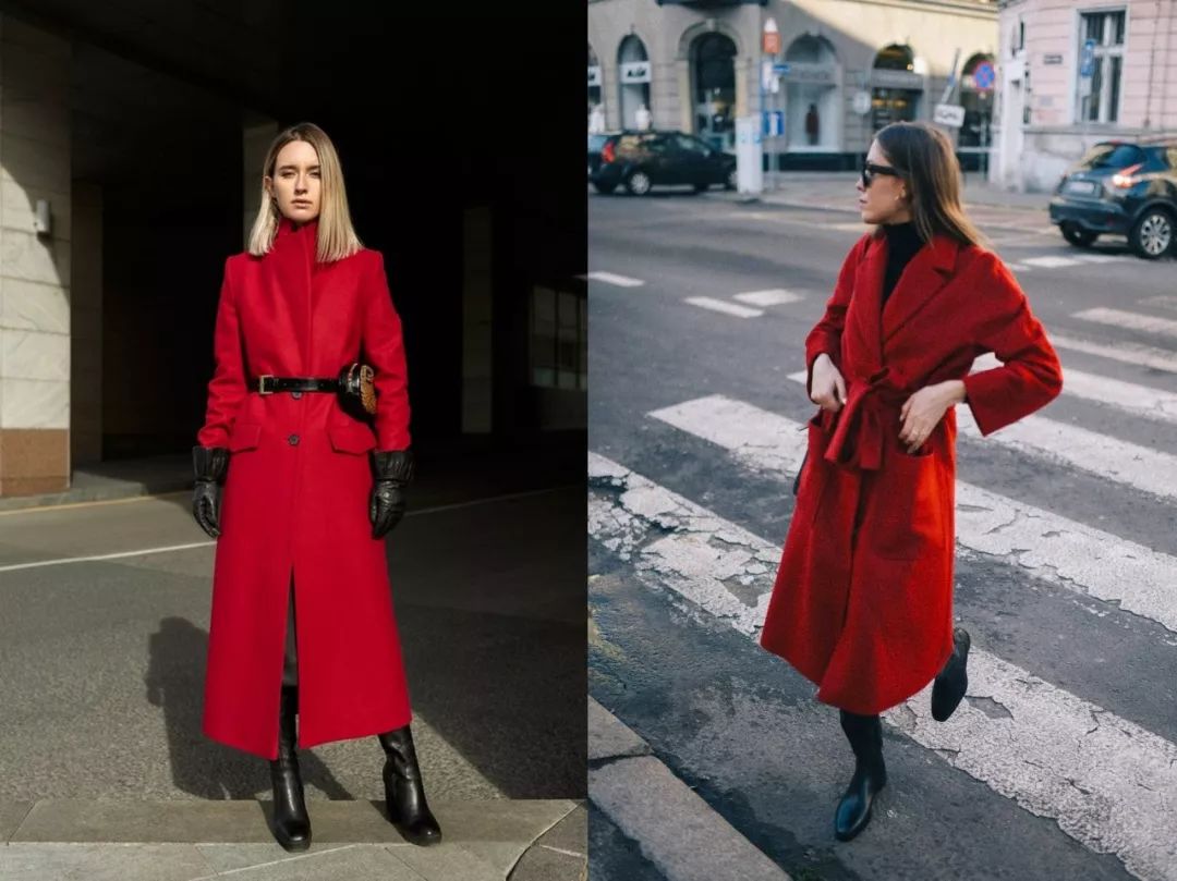如果害怕选不好,那L就推荐你比较好上手的红色呢子大衣+黑色靴子的搭配,几乎不会出错▼
