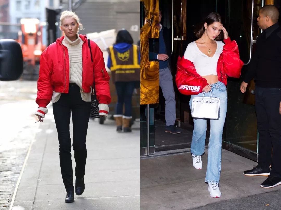 当初Bella这一身红的街拍,真的又飒又少女▼