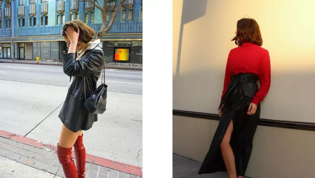 同样,红色跟今年大热的皮质单品也可以很配,不过款式的选择要更注意才会不老气噢▼