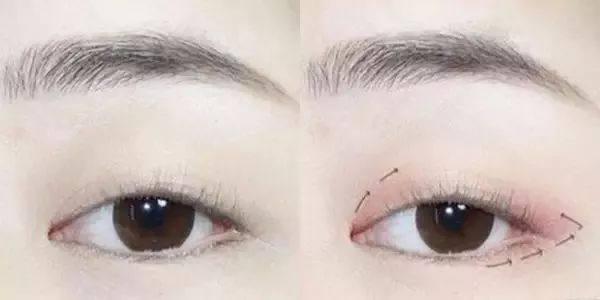不少姑娘懒得涂眼影(左图),的确素净却对放大双眼起不到一丁点儿效果;右图微微高于眼褶2毫米的落日眼影则完全不同,真是“微微一涂就倾城”的最佳诠释。