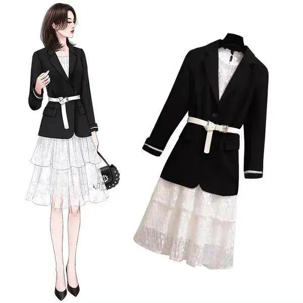 敞开的短款外套搭配宽松的连衣裙,不仅显腿长还能隐藏腰腹的肉肉。