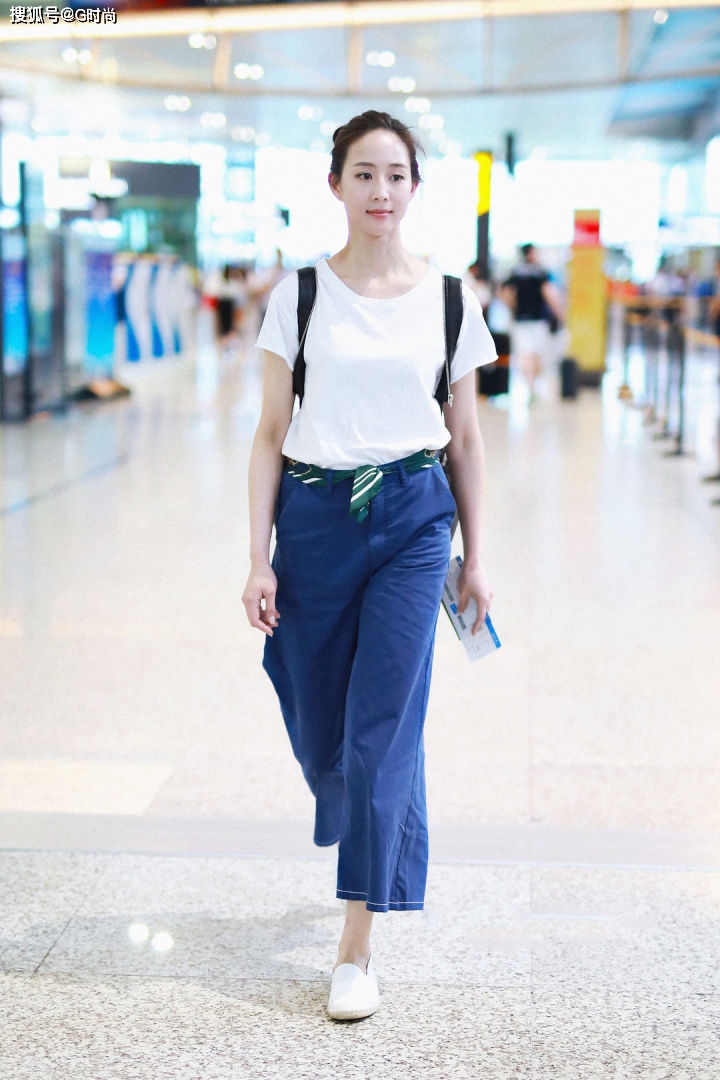 夏日里和阔腿裤搭配的衣服中,一定不能少了简约百搭的T恤。张钧甯选择一条简单的白色T恤,搭配上蓝色九分阔腿裤,脚踩一双舒适的小白鞋,一身简洁清爽的造型穿搭,满满的夏日清凉范,再背个双肩背包,路人的Look造型,不过看着很舒适,和炎热的夏天很搭。
