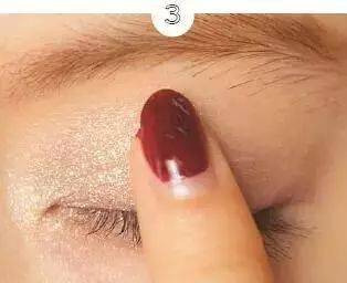 STEP3:再蘸取亮片更大一点的银色眼影粉涂抹于眼睑的前半部分。