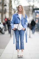 牛仔衣有着经典大方的潮流格调,牛仔外套也是春季常见的单品之一。选择牛仔外套的搭配可以选择牛仔衬衫,同样它也可以单穿也可以和黑色大衣同时出现,像上图这样的穿搭,用牛仔外套叠搭黑色大衣,能体现出穿搭的层次感,穿黑色大衣也显得不再沉闷。