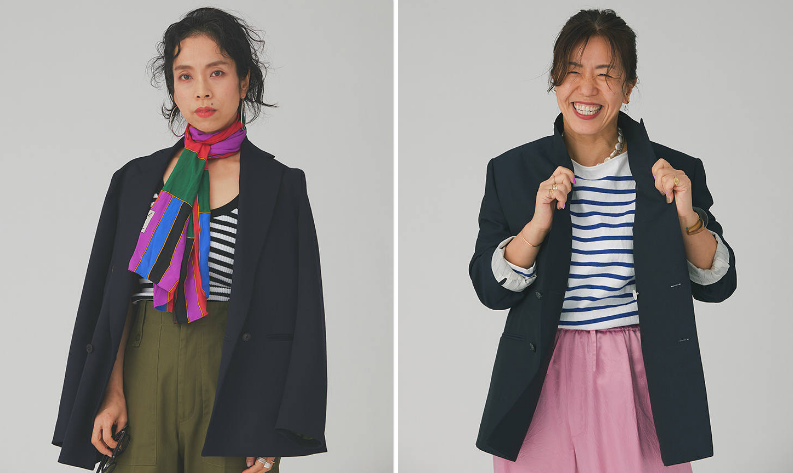 于简单的条纹衫而言,可以通过增加一些配饰,来提升精致感或是改变风格。条纹衫与西装搭配,一条珍珠项链、一对珍珠耳环的加入,为穿着增添了不少精致感。