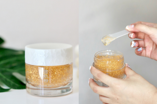 面膜的核心成分就是含量丰富的金箔,通过透明的瓶身就能看到闪亮亮的金箔成分,它有很好的延展性和可塑性,敷在皮肤上,不仅能促进血液循环,加强肌肤的新陈代谢,还能减缓皮肤老化,祛黄紧肤,让肌肤更显活力。黄金面膜适合肌肤休眠时使用,遇上熬夜加班、刷夜追剧,只要在睡前涂上它,第二天醒来就会发现无论多暗沉粗糙的肌肤,都会变得光泽有弹性,而且还会更白皙透亮。