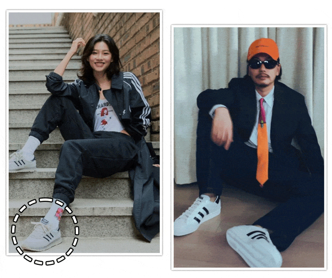 就像她俩经常穿的 adidas和adidas Originals,很多单品不止单独穿百搭时髦减龄,拿来当情侣装也是大写的好看,相同元素的衣服特别多,很大限度的弥补了情侣套装带来的土气效果,这也让很多的情侣们听到了福音。