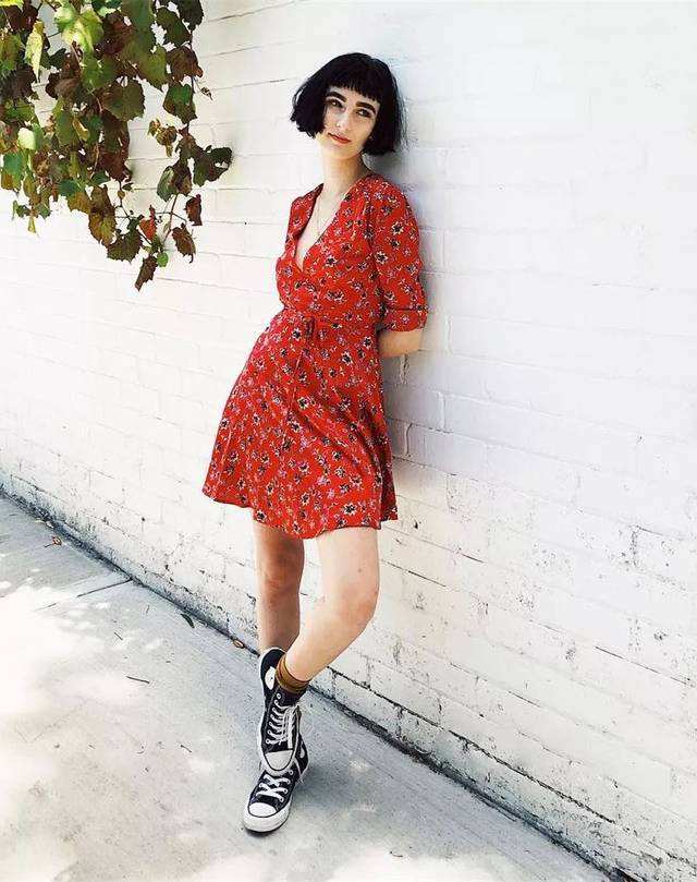 到了天气变暖可以露腿的季节,裙装就是最简单又最有少女感的利器,让整个造型更有层次感,也不会那么平淡。高帮帆布鞋+裙子,很多人说容易显矮,其实不是鞋子的问题,而是裙子。想要穿得瘦且美,一个基本条件就是裙长要把握好。