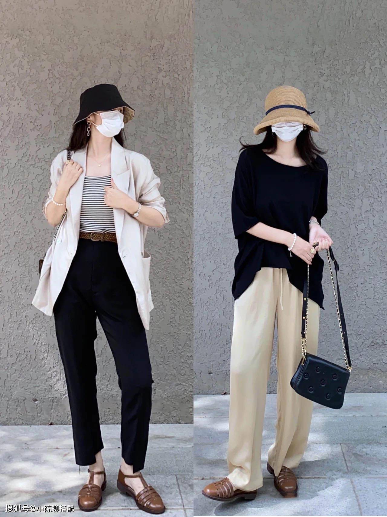 搭配阔腿裤就比较休闲了,很多人选择渔夫凉鞋就是想要舒适一点,出门倒垃圾或买点东西的时候就很需要,像这一身随意又不会显得邋遢。