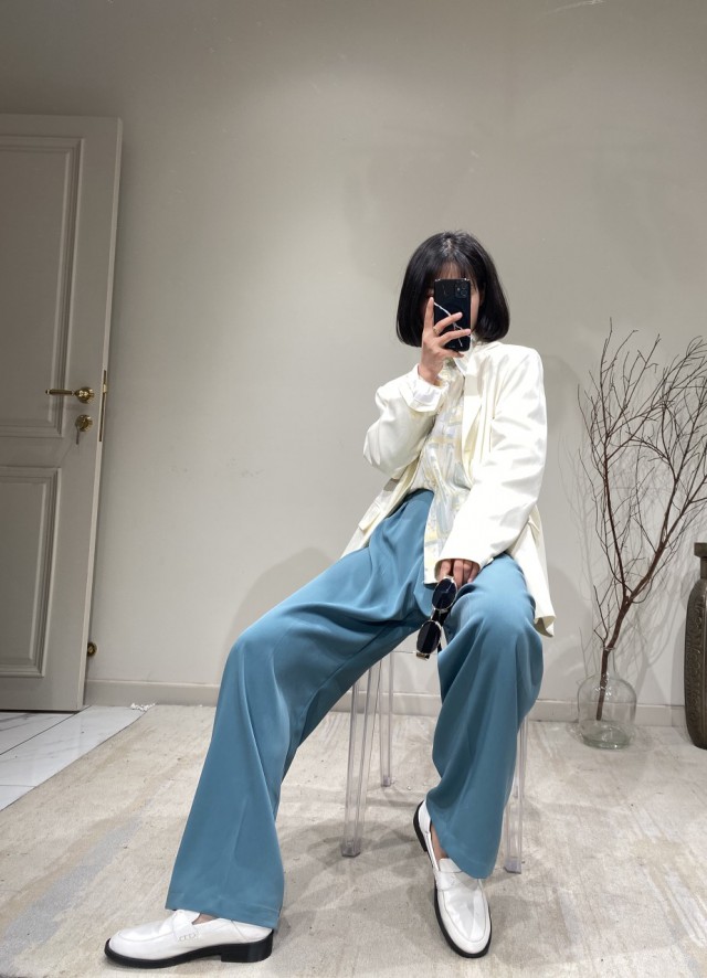 下半身不够完美的话,选择裤装一定要注意色彩。色彩饱和度太高,就会显得很浮夸张扬,更容易展现出下半身的不足,而太深的颜色看起来则会显得沉闷老土不够百搭。所以建议胯宽的女性,在选择裤装色彩的时候,要注意达到百搭耐看的效果,也要具备显瘦的作用,那么中性色就是比较不错的选择。