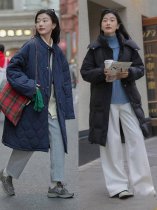 除此之外,长款黑色羽绒服还有一个显著特性,那便是颜色上的延展性,再搭配一款较为修身的版型,很轻松就能穿出显高、显高的效果。并且黑色服饰自身就具有显瘦的特点,也可以有效防止膨松、显胖的既视感。