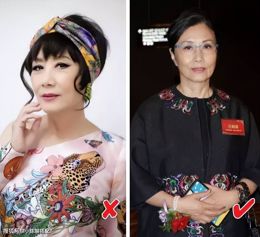 当然,也尽量不要选图案太过繁杂的衣服,就算颜色不扎眼,穿在身上也会显得眼花缭乱,主次不明,很有年龄感。