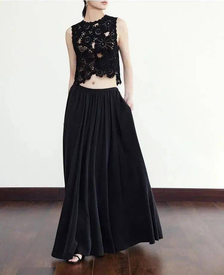 厚度适合,质感顺滑,不管是搭短袖配T恤衫、背心、衬衫等单品, 超大裙摆,上身完美挡住腿部缺陷。
