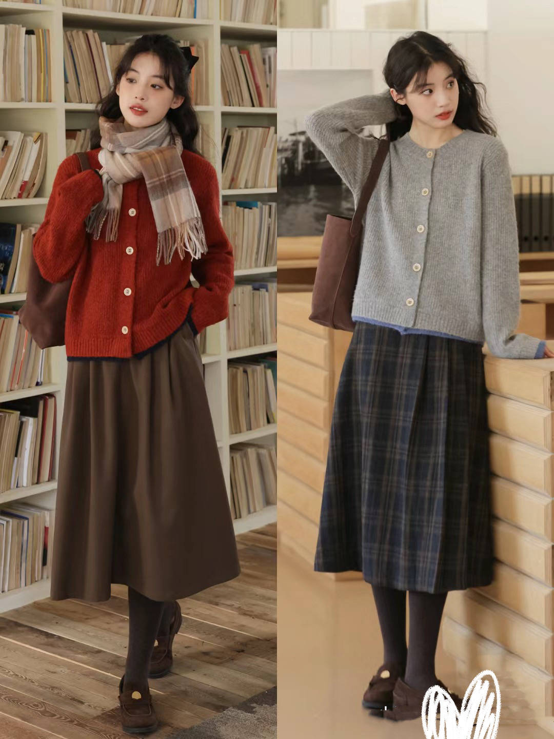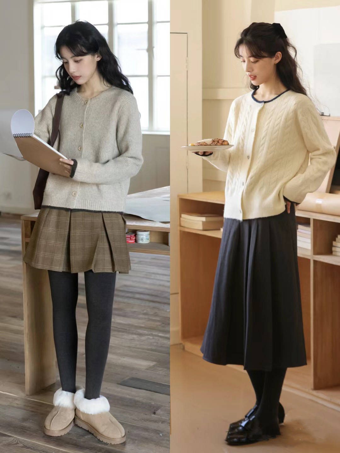 小个子女生,更适合一些气质甜美的穿搭。这时候针织衫+半身裙的组合,就是唯美又浪漫的。我们可以穿文艺风的针织开衫,搭配高腰的百褶半身裙。