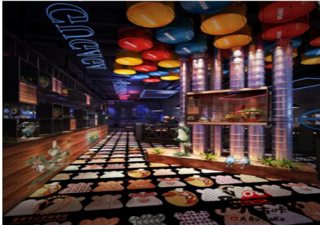 以更精致的细节元素勾起回忆,以更具娱乐性的交互体验感动心灵,啊咕咔咔牛蛙主题餐厅融入现代科技元素,采用大量智能设备、独具新意,满足顾客眼、耳、鼻、舌、身的所有感官体验,从独具匠心的餐厅装修,到各类菜品的手机推送、智能互动,从餐厅虚拟现实场景渲染,到个性礼品、时尚饰品的摆设,再到各种节假日庆典活动,让吃饭不再简简单单是吃饭,大大提高了用餐的趣味性和娱乐性。