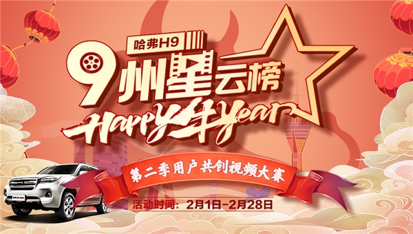 你以为这种又香又有趣的活动只有一次吗?当!然!不!春节,作为中国人最重要的节日,游子归乡,家人团聚,自然少不了一辆兼具家用和越野的好座驾。2月1日-2月28日,值此新春佳节之际, “哈弗H9·九州星云榜 happy牛year”第二季用户共创视频大赛再度扬帆起航,诚邀你和哈弗H9一起驰9迎新,分享自己的happy牛year。