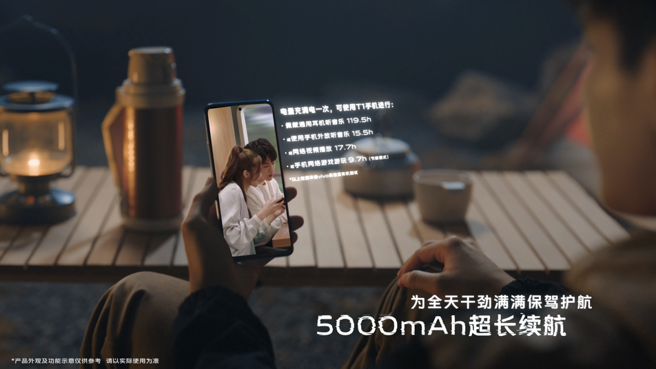 电力超十足,vivo T1搭载5000mAh超大容量电池,配合软硬件智能优化,可带来十分出色的续航能力,畅玩游戏可达9.5小时,看视频更是高达17.5小时,持续畅玩不停歇。