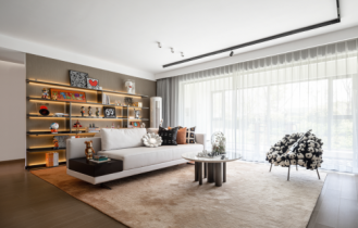 空间以半开放收纳设计为主,玻璃柜集成抽屉、酒架、置物收纳为一体;黑色开放柜和吊柜升降篮的运用,赋予了厨房更强大的储物功能,轻松满足你对厨房功能多样性的需求。当收纳系统与雪松绿百搭而又高雅的色调相结合时,整个厨房空间观感平和且变得富有张力。